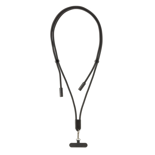 Wir stellen LoopAmp vor, ein 160cm Telefonkabel aus RCS ( Recycled Claim Standard) zertifiziert recyceltem rPET, recyceltem Aluminium, Kupfer und Zinn. Gesamtanteil an recyceltem Material: 84% bezogen auf das Gesamtgewicht des Artikels. Das hochwertige Umhängeband mit hochfestem Lanyard und präzisionsgefertigter Verbindungsöse und Haken verhindert versehentliches Herunterfallen. Tragen Sie LoopAmp um den Hals, dies hält die Hände frei und sorgt für weniger Unordnung in den Taschen. LoopAmp fungiert auch als USB-C-Ladekabel mit einer Schnellladeleistung von bis zu 60W. Egal, ob Sie Ihr Smartphone, Tablet oder sogar einen Laptop aufladen möchten. LoopAmp gewährleistet zuverlässiges und hocheffizientes Laden mit verstärkten Anschlüssen und extrem langlebigen Materialien, die für den täglichen Gebrauch ausgelegt sind. Unterstützt Datenübertragung von USB-C zu USB-C. PVC-frei und in einer FSC-Verpackung verpackt.