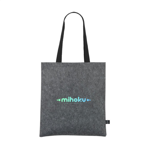 Robuster Shopper aus dickem RPET Qualitätsfilz mit langen, gewebten Baumwollgriffen. GRS-zertifiziert. Gesamtes recyceltes Material: 75%. Fassungsvermögen ca. 11 Liter.