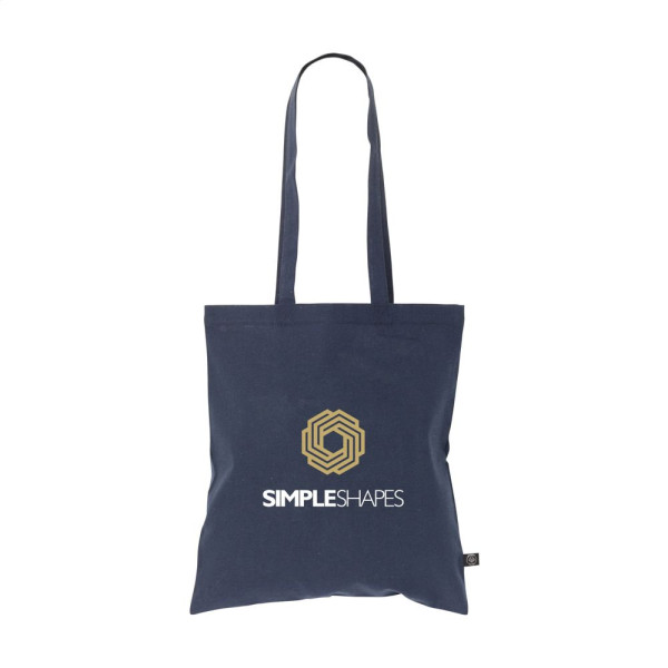 Einkaufstasche mit langen Griffen aus 80% recycelter Baumwolle und 20% recyceltem Polyester (150 g/m²). GRS-zertifiziert. Recyceltes Material insgesamt: 100%. Fassungsvermögen ca. 8 Liter.