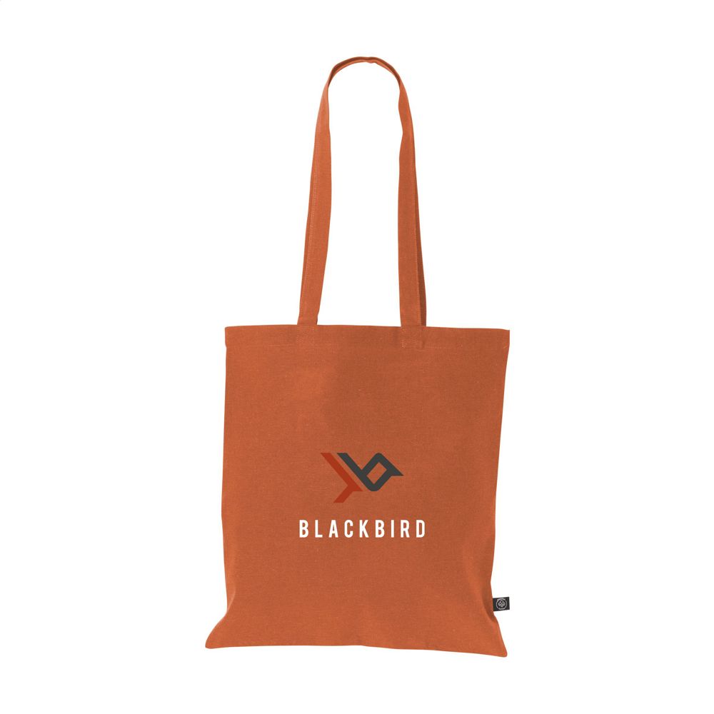Einkaufstasche mit langen Griffen aus 80% recycelter Baumwolle und 20% recyceltem Polyester (150 g/m²). GRS-zertifiziert. Recyceltes Material insgesamt: 100%. Fassungsvermögen ca. 8 Liter.