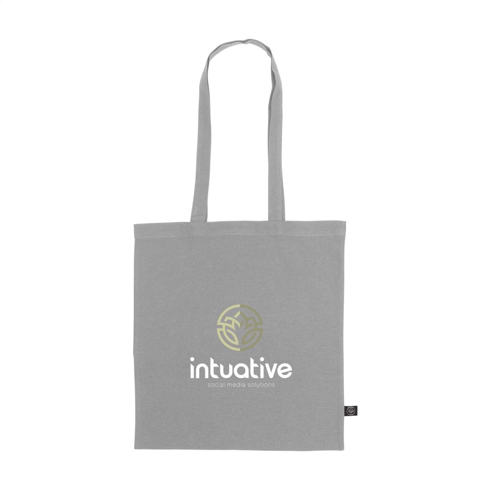 Einkaufstasche mit langen Griffen aus 80% recycelter Baumwolle und 20% recyceltem Polyester (150 g/m²). GRS-zertifiziert. Recyceltes Material insgesamt: 100%. Fassungsvermögen ca. 8 Liter.