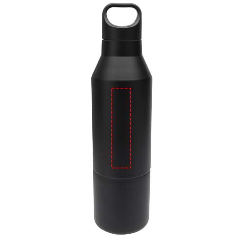 RCS-zertifizierte doppelwandige Kupfer-Isolierflasche aus Edelstahl mit abnehmbarem Becher, ebenso doppelwandig. Diese Mehrzweck-Flasche ist so konzipiert, dass sie in die Seitentasche eines Rucksacks passt, und verfügt über einen praktischen in den Deckel integrierten Tragegriff. Die Außenseite der Flasche ist mit einer langlebigen Pulverbeschichtung versehen. Hält Getränke 12 Stunden warm oder 24 Stunden kalt. Verpackt in einer Geschenkbox aus Recyclingkarton. Fassungsvermögen der Flasche: 600 ml. Fassungsvermögen Tasse: 300 ml.