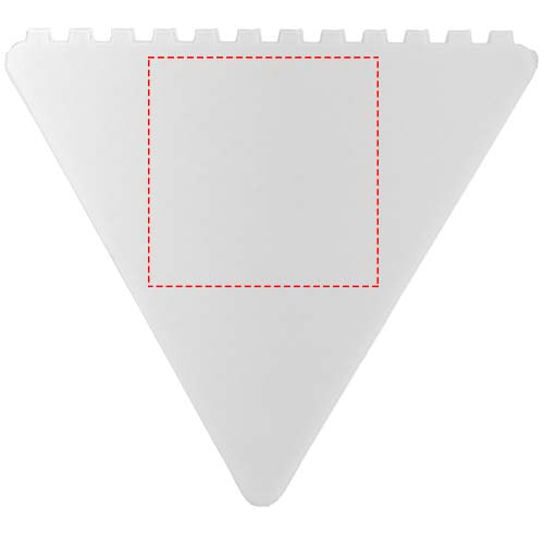 Dreieckiger Eiskratzer um die Windschutzscheibe von Eis und Schnee zu befreien mit einer großen Werbeanbringungssfläche. Jede der 3 Seiten kann zum Eiskratzen verwendet werden. Hergestellt in Großbritannien aus recyceltem Kunststoff. Der Eiskratzer hat aufgrund der Beschaffenheit des recycelten Materials eine gesprenkelte Oberfläche.
