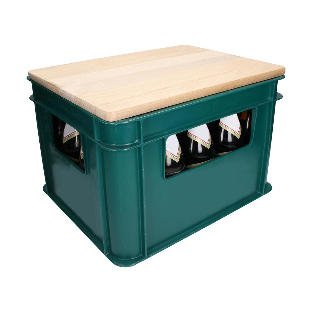 2 in 1. Stabiler Bierkastensitz aus unlackiertem Buchenholz europäischen Ursprungs, der auch als Schneidbrett verwendet werden kann. Passt auf viele Standard-Bierkästen. Auf der Unterseite befinden sich zwei Stege, die einen festen Halt auf dem Bierkasten ohne Verrutschen ermöglichen. Nicht für die Reinigung in der Spülmaschine geeignet.
