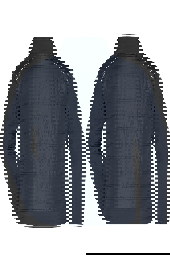 Pflegeleichtes 2-Lagen Softshellmaterial kombiniert mit gesteppten Einsätzen im Vorder- und Rückenteil