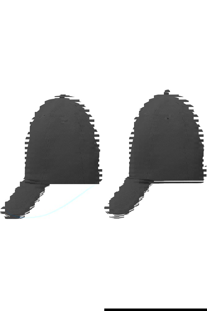 6 gestickte Luftlöcher 8 Ziernähte am Schild Stirnanliegend Gefüttertes Satinschweißband Auch ohne Sandwich erhältlich, siehe MB6111 Metallschnalle in mattsilber mit Druckknopf und gestickter Öse Heavy brushed Cotton Heavy brushed Cotton angeraut Baumwolle Verschluss: Clip 6 Panel Cap stirnanliegend Sandwich