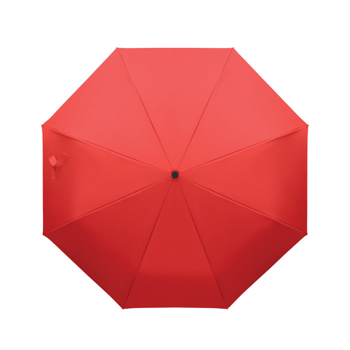 21'' Regenschirm aus 190 T RPET Pongee. Windbeständig. Schwarz überzogenes 2-teiliges Fiberglasgestell, Stangen aus Fiberglas. Gummierter D-förmiger Karabinergriff. Passende Schirmhülle. Automatische Öffnung und Schließung.