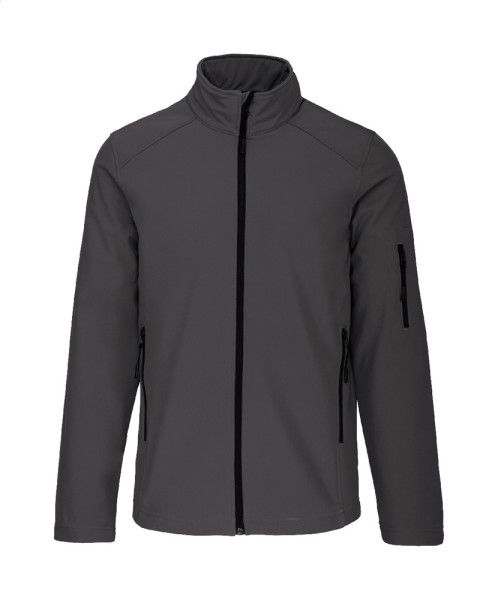 Softshell-Jacke mit Reißverschluss – dreilagig, atmungsaktiv, wind- und wasserdicht – mit Reißverschlusstaschen an Ärmeln und Seiten. Mit atmungsaktiver Zwischenschicht und innenliegendem Micro-Polar-Fleece. 95 % Polyester, 5 % Elasthan, 300 g/m². Marke: Kariban.
