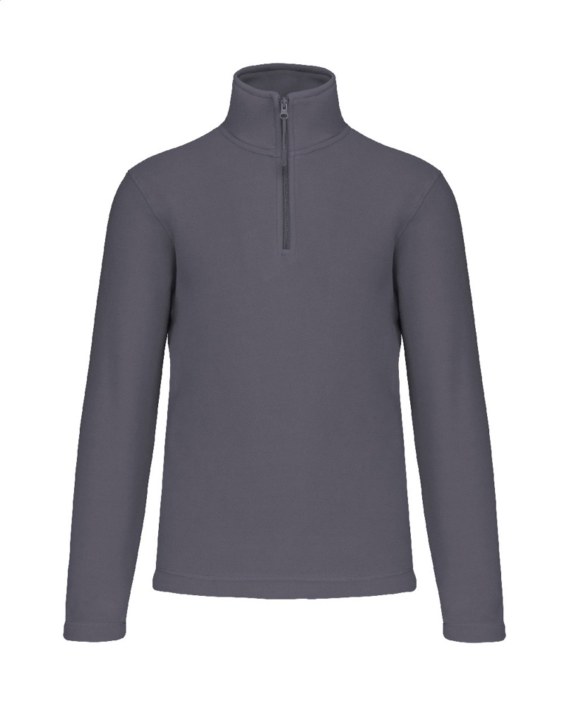 Jacke aus Micro-Polarfleece mit kurzem Reißverschluss, Seitentaschen und Anti-Pilling-Beschichtung. Material: 100 % Polyester, 300 g/m². Marke: Kariban.