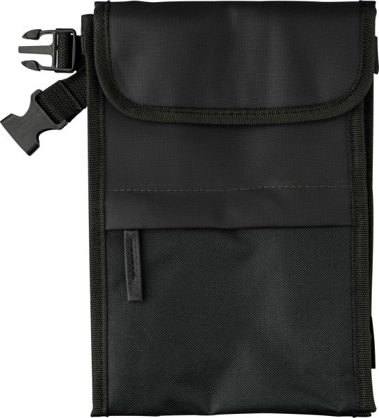 Kühlbeutel aus rPET (600D) Polyester mit PU-Beschichtung für Wasserabweisung. Mit 2 mm PE-Polsterung und Aluminiumfolienfutter zur Isolierung. Mit Fronttasche mit Reißverschluss, oberem Fach, seitlicher Netztasche und Klebeverschluss. Mit Tragegriff, Kunststoffschnalle und Schultergurt. Fassungsvermögen 5 l, drei Fächer. Mit rPET-Etikett außen und individuellem Etikett innen.