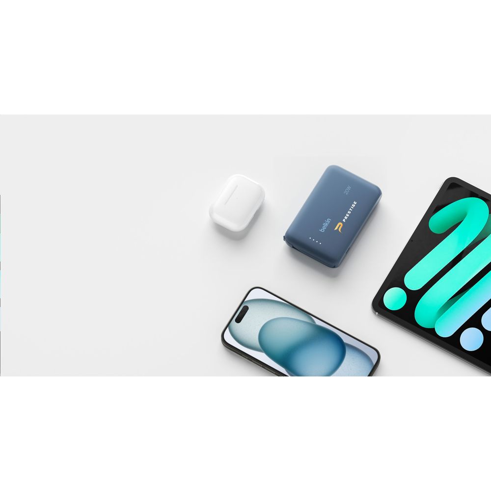 Powerbank 10.000 mAh mit integriertem Kabel, von der Marke Belkin. Das Gehäuse (ohne Kabel) besteht zu 72% aus recycelten Materialien. Mit Pass-Through-Ladefunktion: Geräte können aufgeladen werden, während die Powerbank selbst aufgeladen wird. Laden Sie zwei Geräte gleichzeitig mit einer Leistung von bis zu 20 W über das integrierte USB-C-Kabel und den zusätzlichen Anschluss. Diese Powerbank bietet bis zu 43 Stunden zusätzliche Akkulaufzeit in einem kompakten und leichten Gehäuse. Mit LED-Anzeigeleuchte. Mit LED-Anzeigeleuchte. 100% kunststofffreie Verpackung. Hergestellt aus recyceltem Kunststoff. Inklusive Gebrauchsanweisung. Verpackt pro Stück.