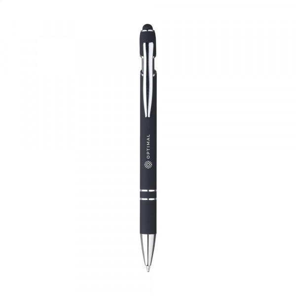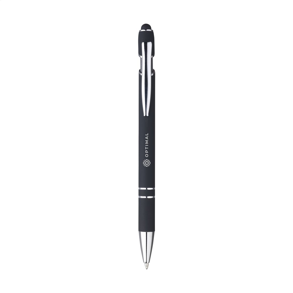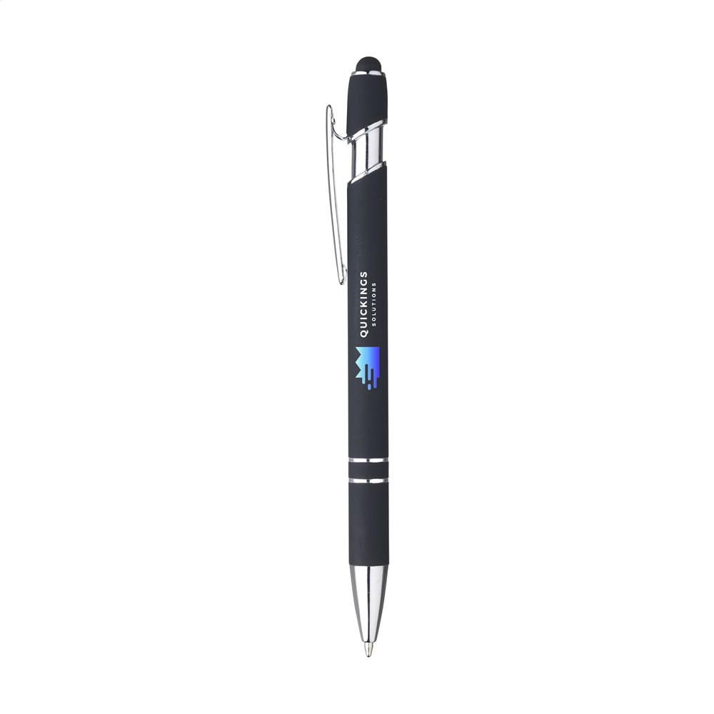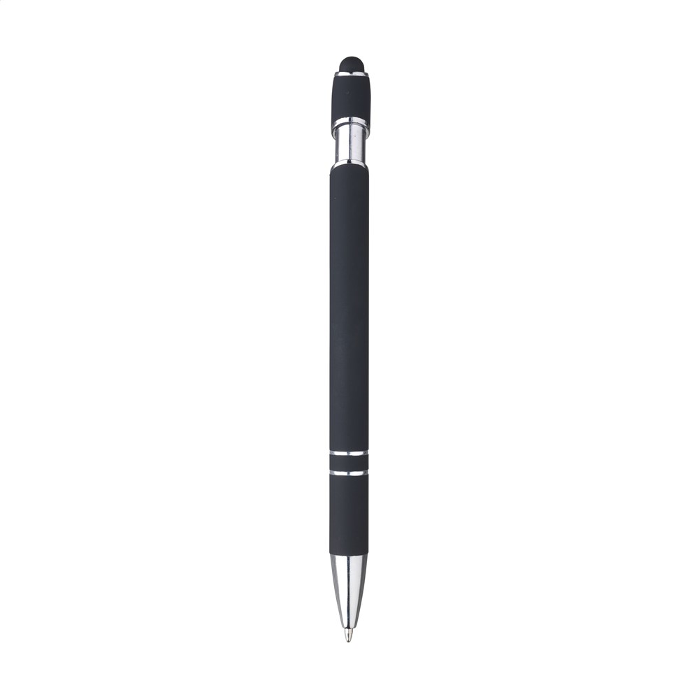 Schlanker, blauschreibender Kugelschreiber mit Aluminiumgriff. Ausgestattet mit einem gummierten Soft-Touch-Finish und einer Gummi-Spitze. Robuster Metallclip und Kunststoffspitze. ACHTUNG: Digitaldruck auf dem weißen Kugelschreiber ist nicht möglich.