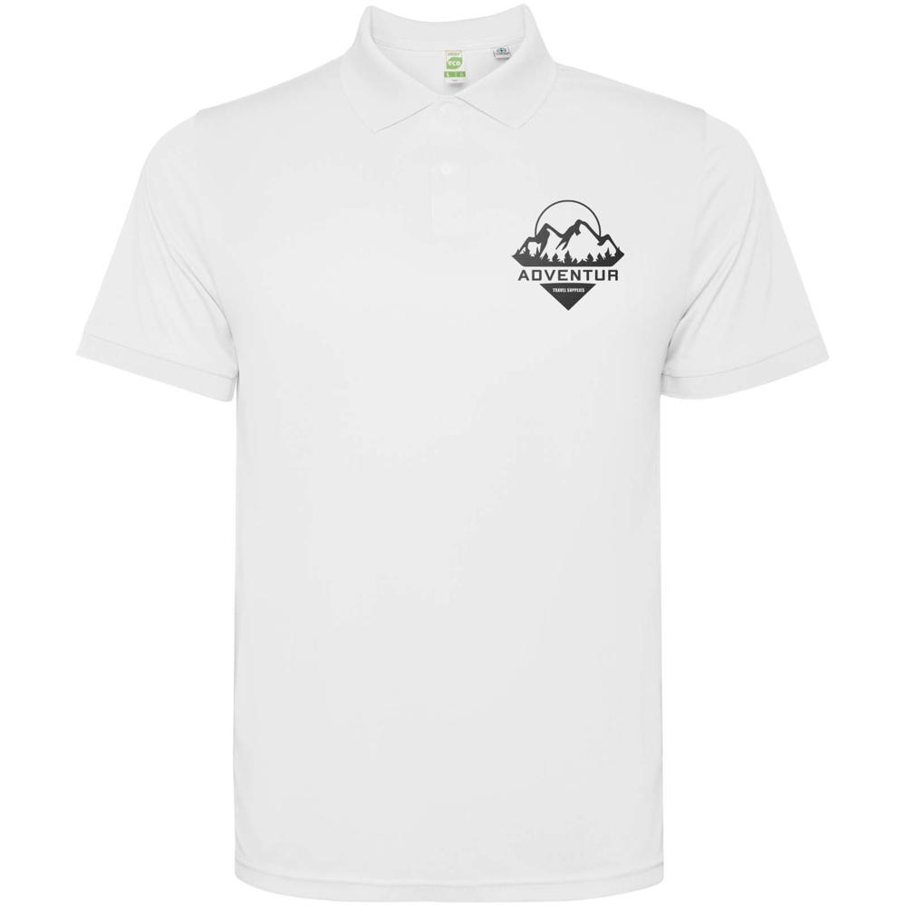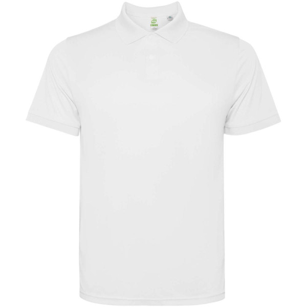 Kurzärmeliges Poloshirt für Herren. Verstärkte und verdeckte Nähte am Innenkragen. 1×1-Rippstrick an Bündchen und Kragen. Seitennähte. Knopfleiste mit 3 Knöpfen und Seitenschlitze.