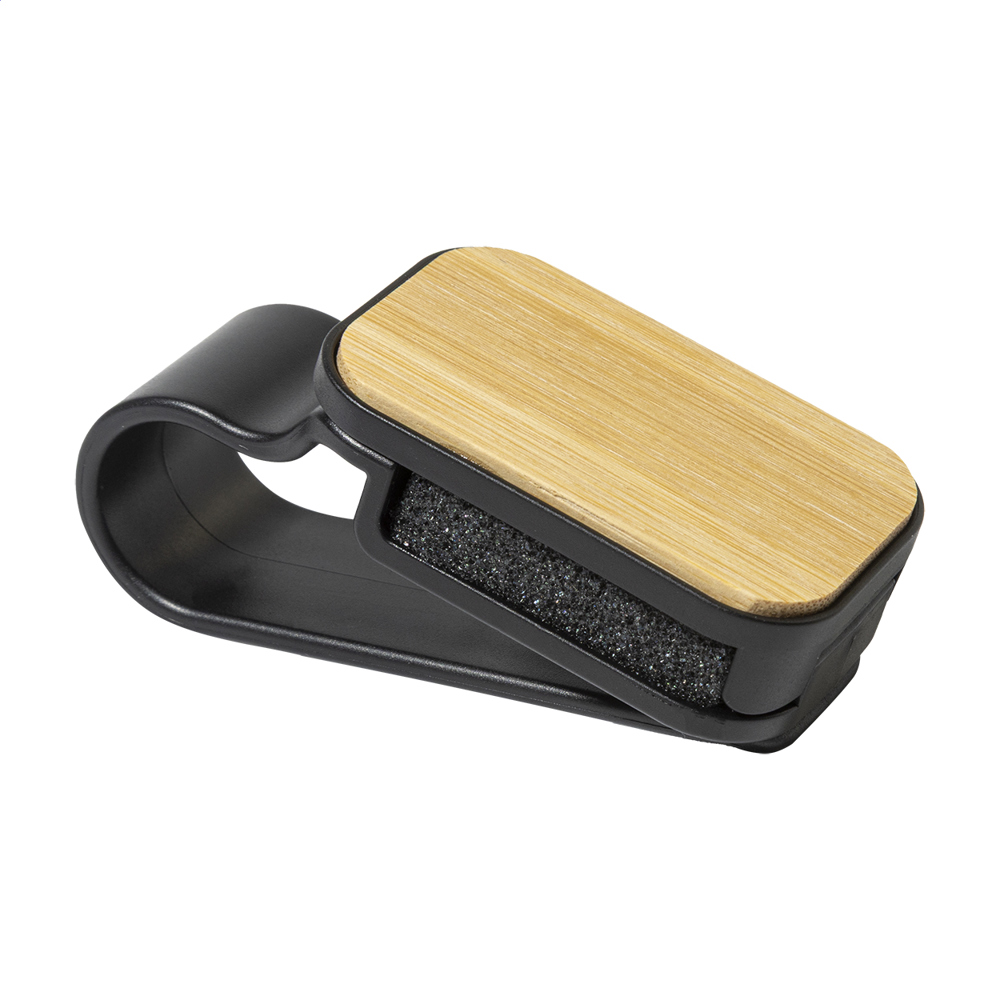 Praktischer Brillenhalter für die Sonnenblende im Auto, aus recyceltem ABS und Bambus. mehr